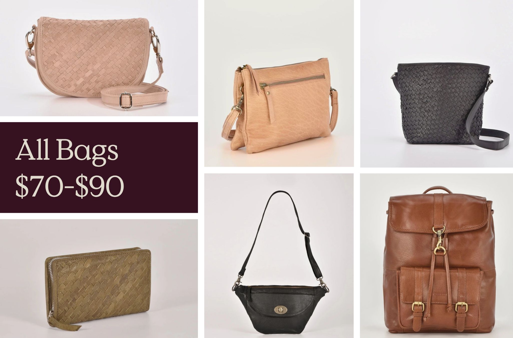 - NEW TO THE SALE! Gabee Leather Bags from $75 – $85, RRP up to $299